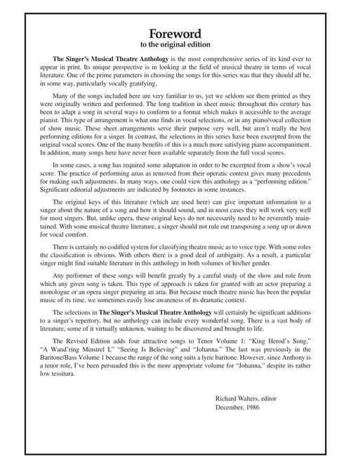 tenor book/online audio pack, softcover audio online the world''s most trusted source for great theatre literature for singing actors. this edition includes access to online recordings of piano accompaniments for each piece. the book features authentic editions of each song in the original keys. the songs have been carefully chosen for each voice type and are culled from a wide selection of classic and contemporary shows. contents: allegro: you are never away · aspects of love: seeing is believing · the boys from syracuse: come with me : cabaret: if you could see her, sitting pretty · can-can: i am in love · the cat and the fiddle: the breeze kissed your hair, a new love is old · cats: the ballad of billy m''caw · celebration: fifty million years ago · company: being alive, someone is waiting · do re mi: make someone happy · fanny: fanny · finian''s rainbow: when i''m not near the girl i love · flower drum song: you are beautiful · a funny thing happened on the way to the forum: love, i hear · gypsy: all i need is the girl · jesus christ superstar: king herod''s song · kismet: stranger in paradise · lost in the stars: the wild justice · me and juliet: the big black giant, that''s the way it happens · the mikado: a wand''ring minstrel i · my fair lady: on the street where you live · oklahoma!: kansas city · once upon a mattress: many moons ago · pal joey: i could write a book · pipe dream: all kinds of people · roberta: you''re devastating · shenandoah: the only home i know · south pacific: you''ve got to be carefully taught, younger than springtime · street scene: lonely house · sunday in the park with george: finishing the hat · sweeney todd: johanna, ladies and their sensitivities, not while i''m around · two by two: i do not know a day i did not love you · wish you were here: wish you were heretenor book/online audio pack, softcover audio online the world''s most trusted source for great theatre literature for singing actors. this edition includes access to online recordings of piano accompaniments for each piece. the book features authentic editions of each song in the original keys. the songs have been carefully chosen for each voice type and are culled from a wide selection of classic and contemporary shows. contents: allegro: you are never away
