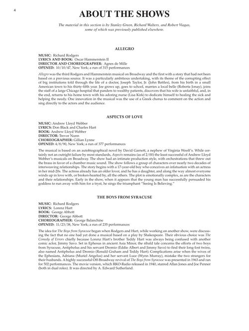 THE BOYS FROM SYRACUSE: Come with Me : CABARET: If You Could See Her, Sitting Pretty