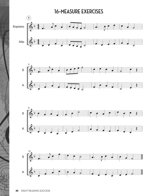 sa book with media online, softcover media online this choral sight reading resource is designed to help the secondary choir students improve their music literacy skills. with 170 sa exercises divided into 2, 4, 8, 16 and 32 measure sets, even beginning groups can develop advanced skills over a relatively short period of time. the exercises are also available as a download for projecting to a screen or distributing to students via print or tablet as well as reference audio played on a keyboard.sa book with media online, softcover media online this choral sight reading resource is designed to help the secondary choir students improve their music literacy skills. with 170 sa exercises divided into 2, 4, 8, 16 and 32 measure sets, even beginning groups can develop advanced skills over a relatively short period of time. the exercises are also available as a download for projecting to a screen or distributing to students via print or tablet as well as reference audio played on a keyboard.