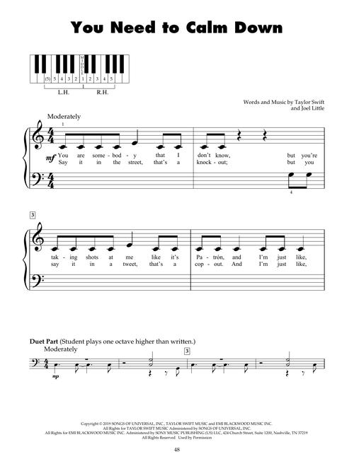 | Hal Leonard Digital Downloads | You Need To Calm Down PDF INSTANT DOWNLOAD | Taylor Swift, Joel Little | 01523124 | 4.99 | ||