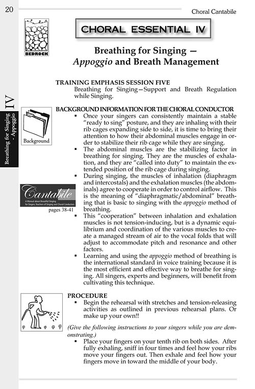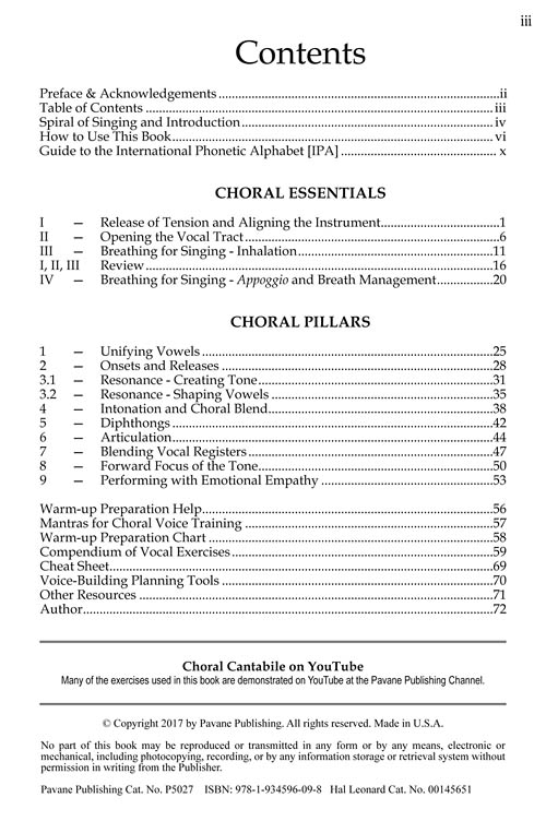 book, octavo choral cantabile is a manual that transforms a choir''s warm-up time into meaningful voice-building. dr. katharin rundus is a renowned singer, voice instructor and choral conductor who has authored three vocal pedagogy textbooks. the first, cantabile (p5023), is a comprehensive college level text now used the world over. cantabile: voice class (p5026), is single semester text with equal acclaim. choral cantabile is the final book in the series and is specifically for the choral conductor. organized in the same unique, easy-read format, with clarifying icons and duplicatable exercises, this will be a required resource in the classroom and an aid for choral conductors everywhere.book, octavo choral cantabile is a manual that transforms a choir''s warm-up time into meaningful voice-building. dr. katharin rundus is a renowned singer, voice instructor and choral conductor who has authored three vocal pedagogy textbooks. the first, cantabile (p5023), is a comprehensive college level text now used the world over. cantabile: voice class (p5026), is single semester text with equal acclaim. choral cantabile is the final book in the series and is specifically for the choral conductor. organized in the same unique, easy-read format, with clarifying icons and duplicatable exercises, this will be a required resource in the classroom and an aid for choral conductors everywhere.